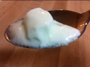 Wait about 6 hours. Check the yogurt, it should ressemble thick cream (viscosity of final product will increase when refrigerated). If it doesn’t look like thick cream yet, allow mixture to set a little longer. Once it sets to a thick texture, transfer to a clean glass/plastic food container, gently stir, and cover. Place yogurt in the fridge (preferably overnight). After chilling for several hours, yogurt texture should be smooth and ready to eat!